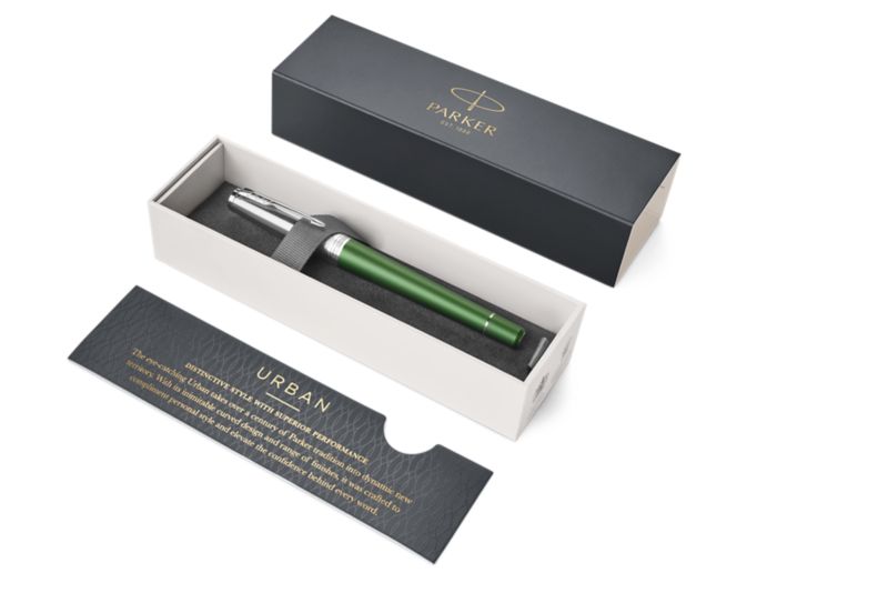 Ручка роллер Parker Urban Premium Green от официального дилера Parker в Новомосковске. Вы можете дополнительно заказать гравировку, которая подчеркнет Вашу оригинальность и придаст памятность статусному подарку. Все ручки Паркер поставляются в фирменном футляре.