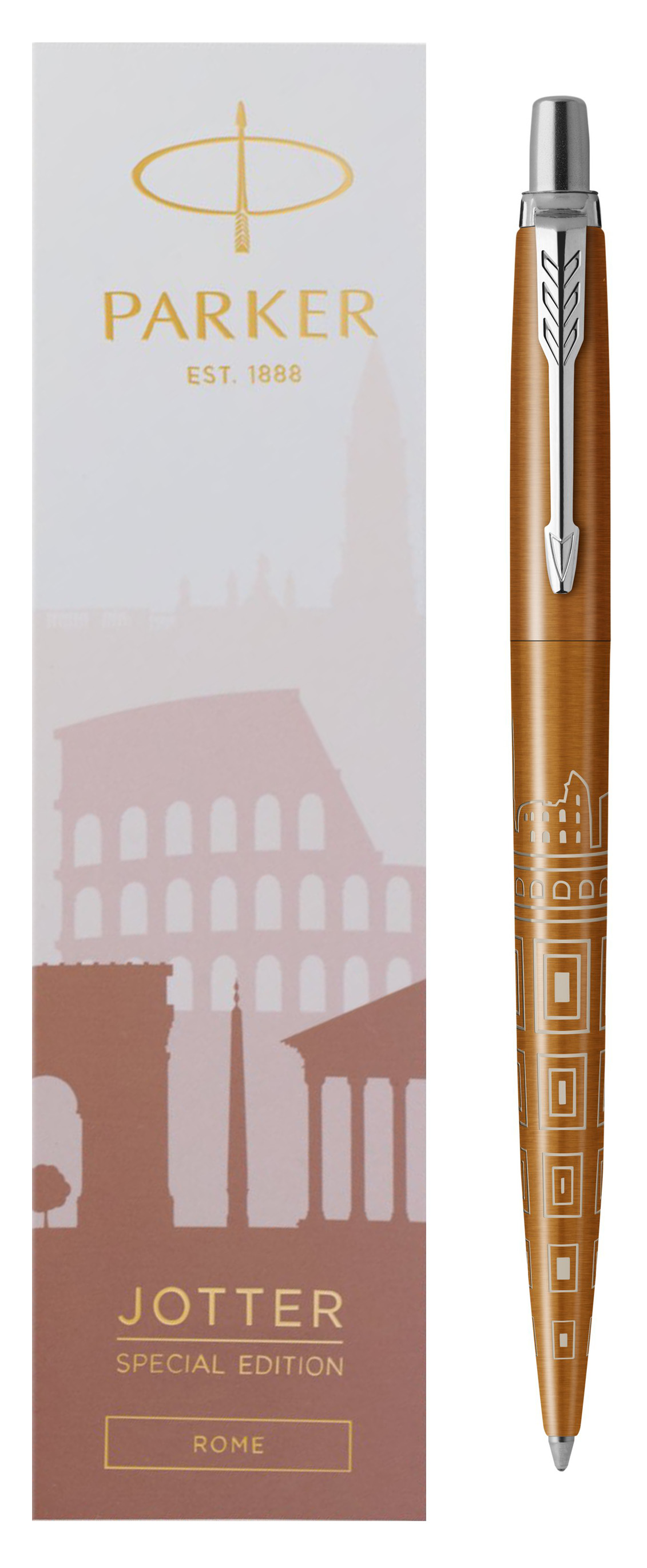 Ручка шариковая Parker Jotter Rome Bronze CT от официального дилера Parker в Новомосковске. Вы можете дополнительно заказать гравировку, которая подчеркнет Вашу оригинальность и придаст памятность статусному подарку. Все ручки Паркер поставляются в фирменном футляре.