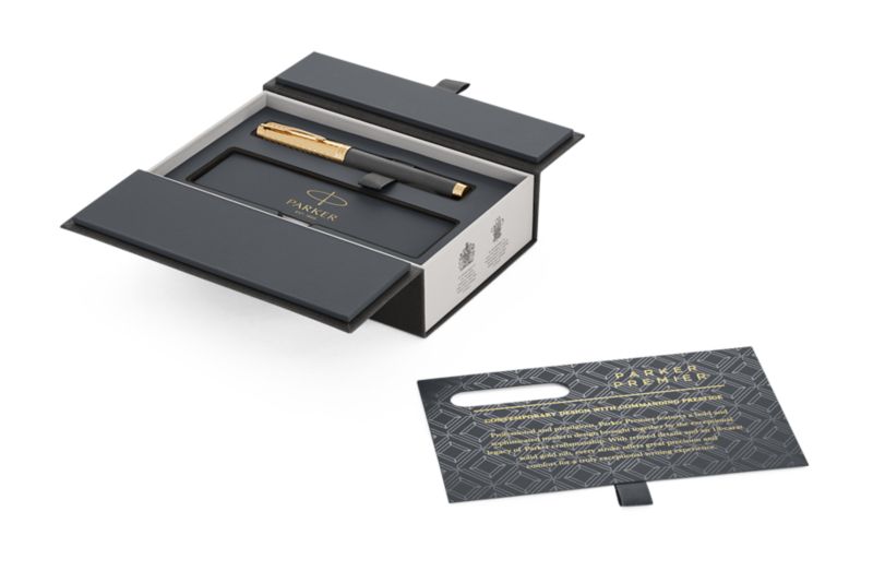 Ручка роллер Parker Premier Storm Grey GT от официального дилера Parker в Новомосковске. Вы можете дополнительно заказать гравировку, которая подчеркнет Вашу оригинальность и придаст памятность статусному подарку. Все ручки Паркер поставляются в фирменном футляре.
